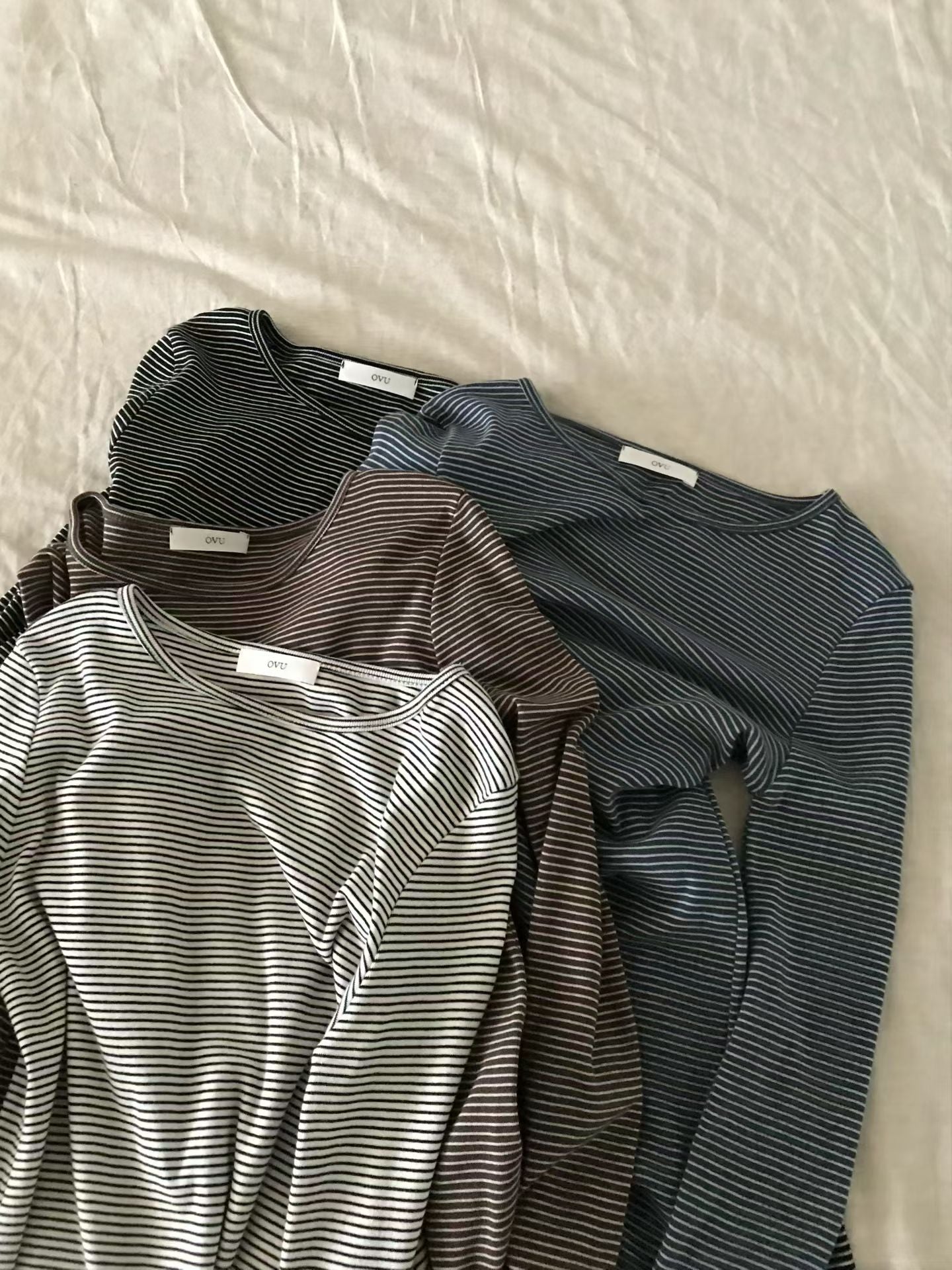 ♡Everyday柔棉細條紋親膚長Tee♡ (C251259)