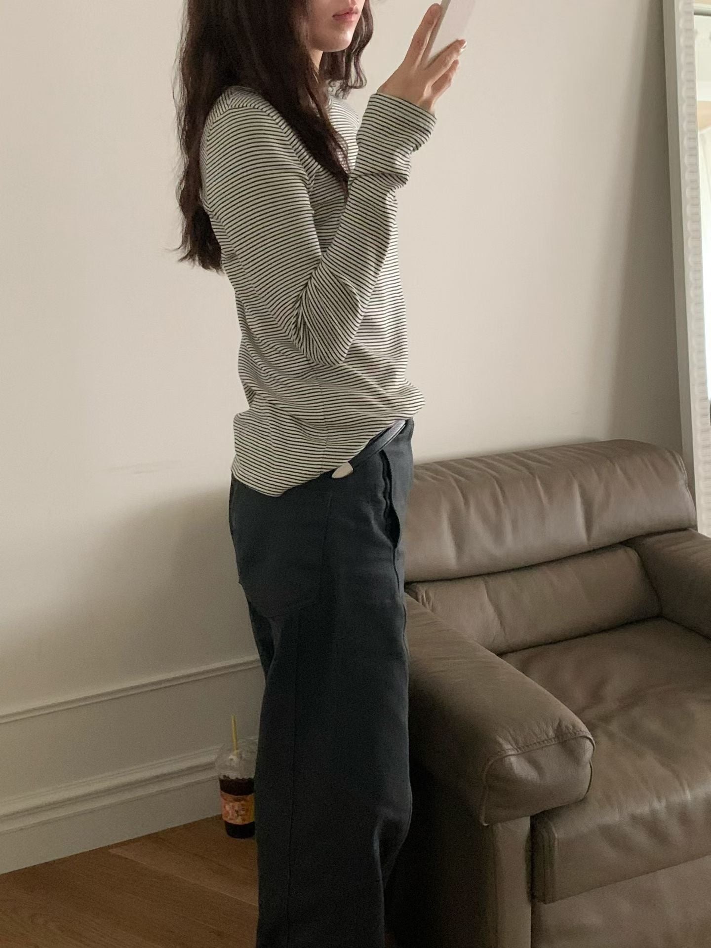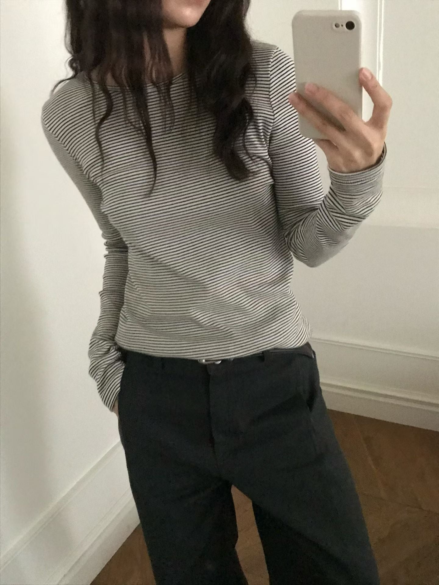• 這款細條紋長袖上衣,是衣櫃裡一年四季都能反覆穿、永不出錯的「基本款升級」。