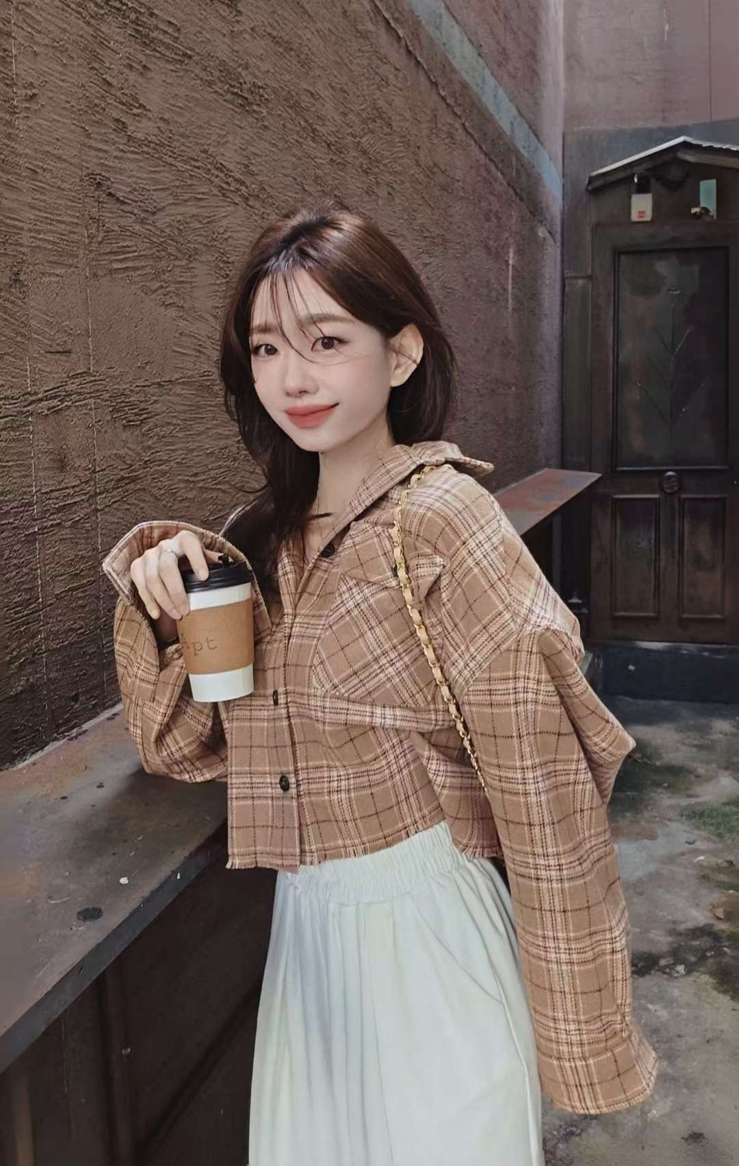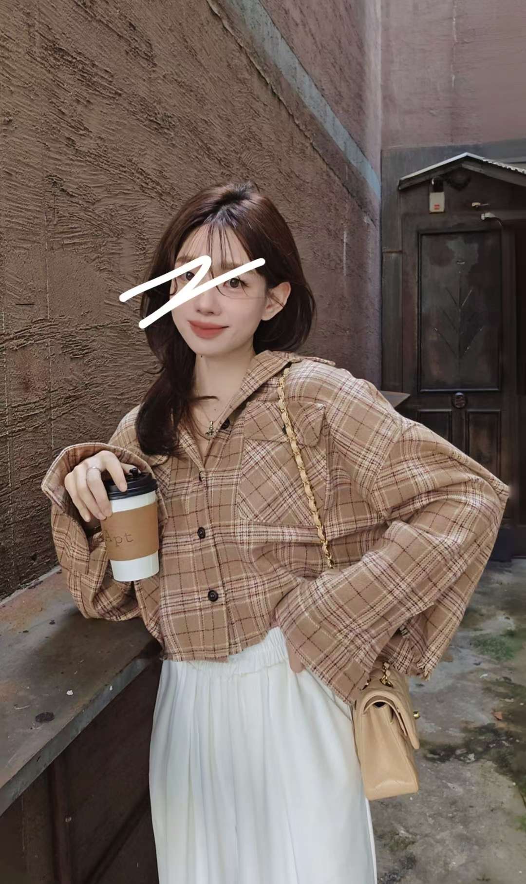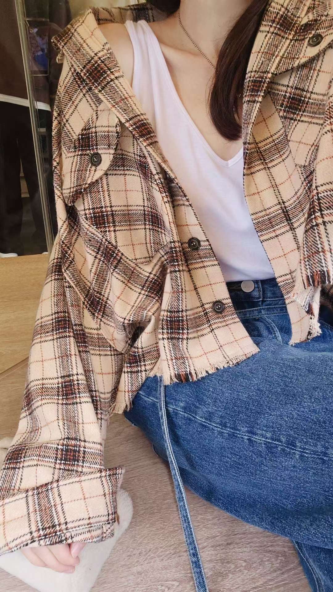 歐美時髦風格的格紋襯衫,可以單穿當襯衫或是外罩式小外套,降溫後穿在大衣內也非常適合~格紋的配色美美的。