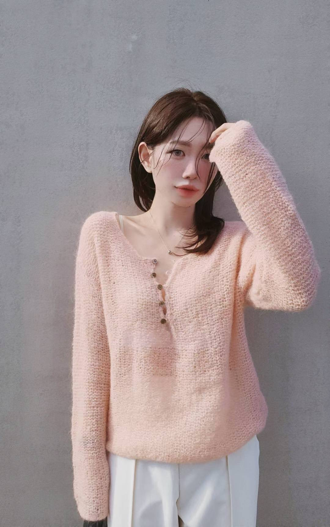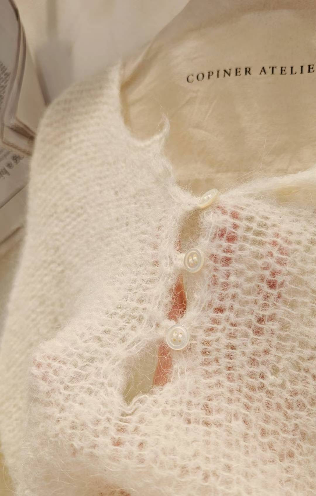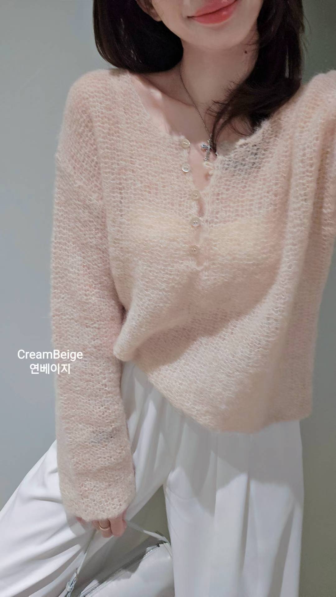 透肌的空氣感好美!也可以把釦子穿在背後,稍微開釦露出後頸線條也很美。
