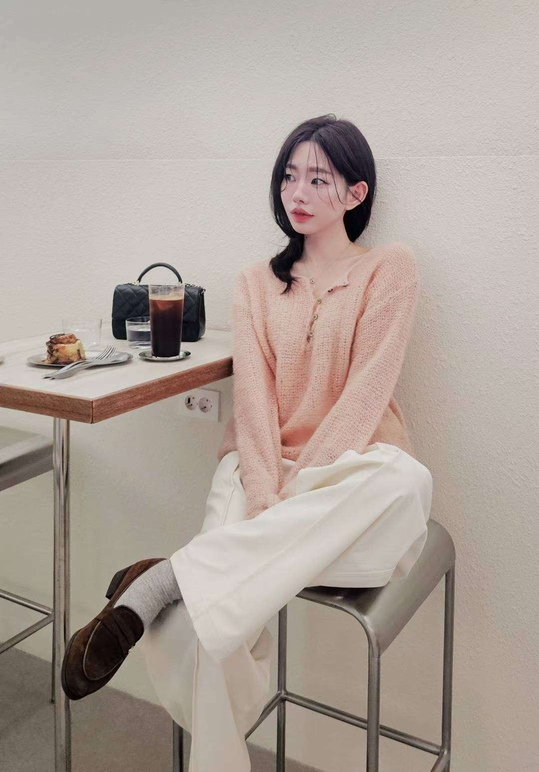 半開襟亨利領設計,單穿或是疊搭都很適合的一款毛衣。