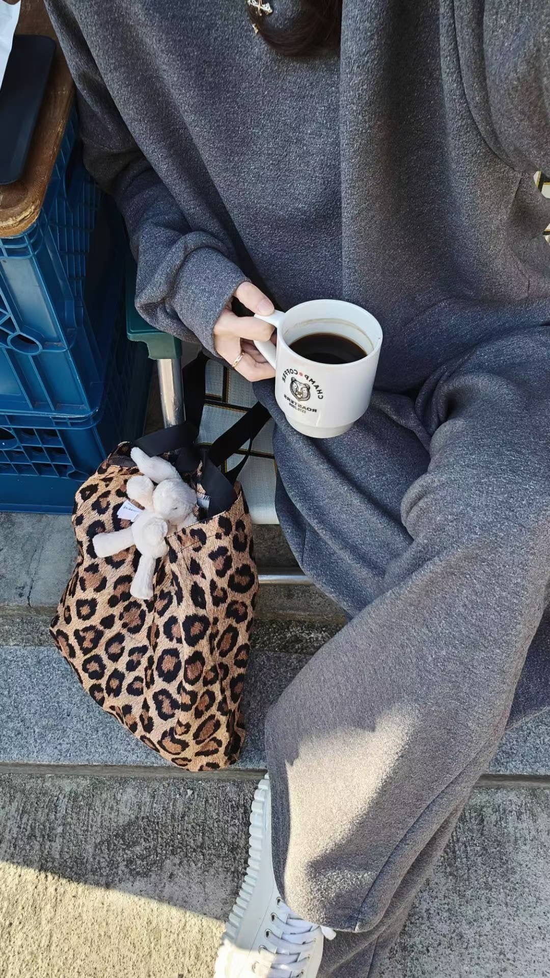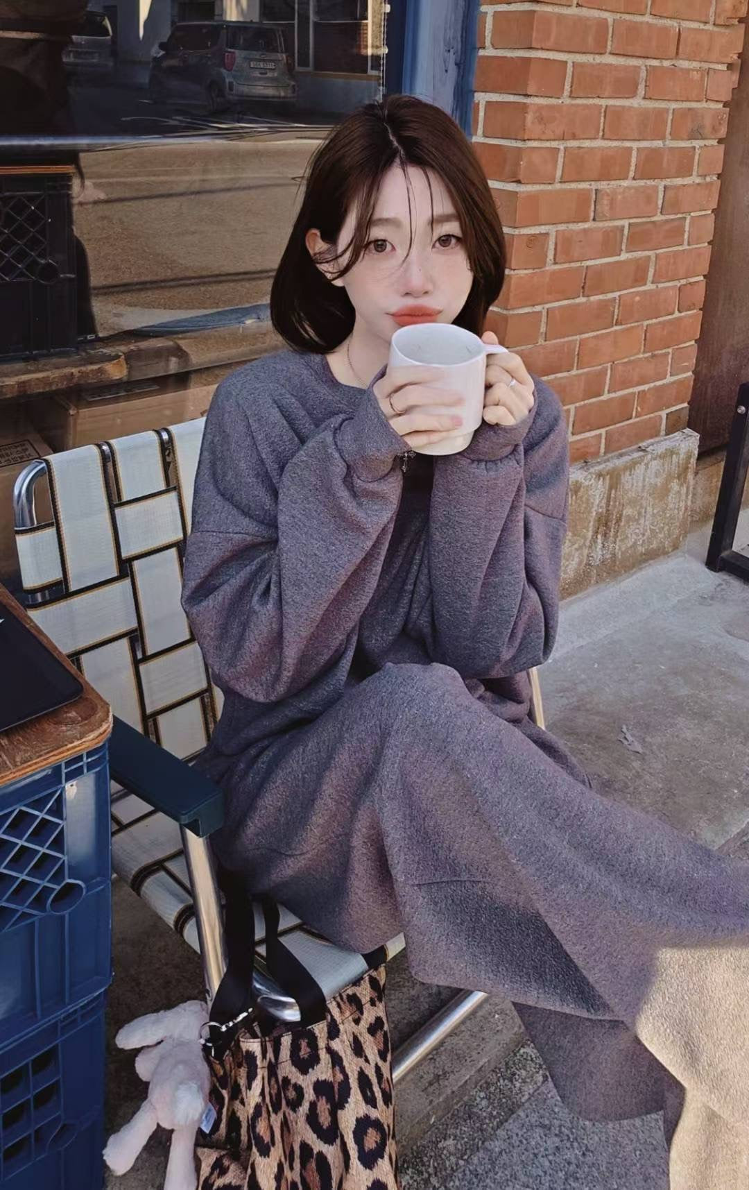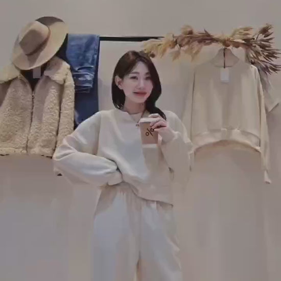 休閒鬆弛風格最愛的懶人衛衣套裝,上身是中等長度,剛好蓋住褲頭,不紮也好看~微寬的直筒長褲,修飾又大長腿,搭配其他秋冬針織毛衣一樣美美的。