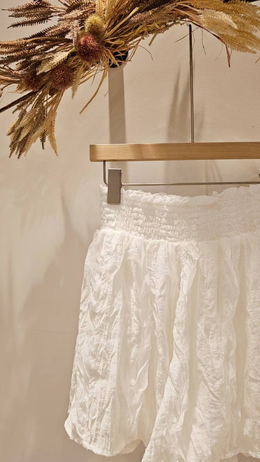 小傘狀的褲裙版型,修飾腿部線條,縮摺飾腰部設計,舒適不過緊,露出來也美美的。